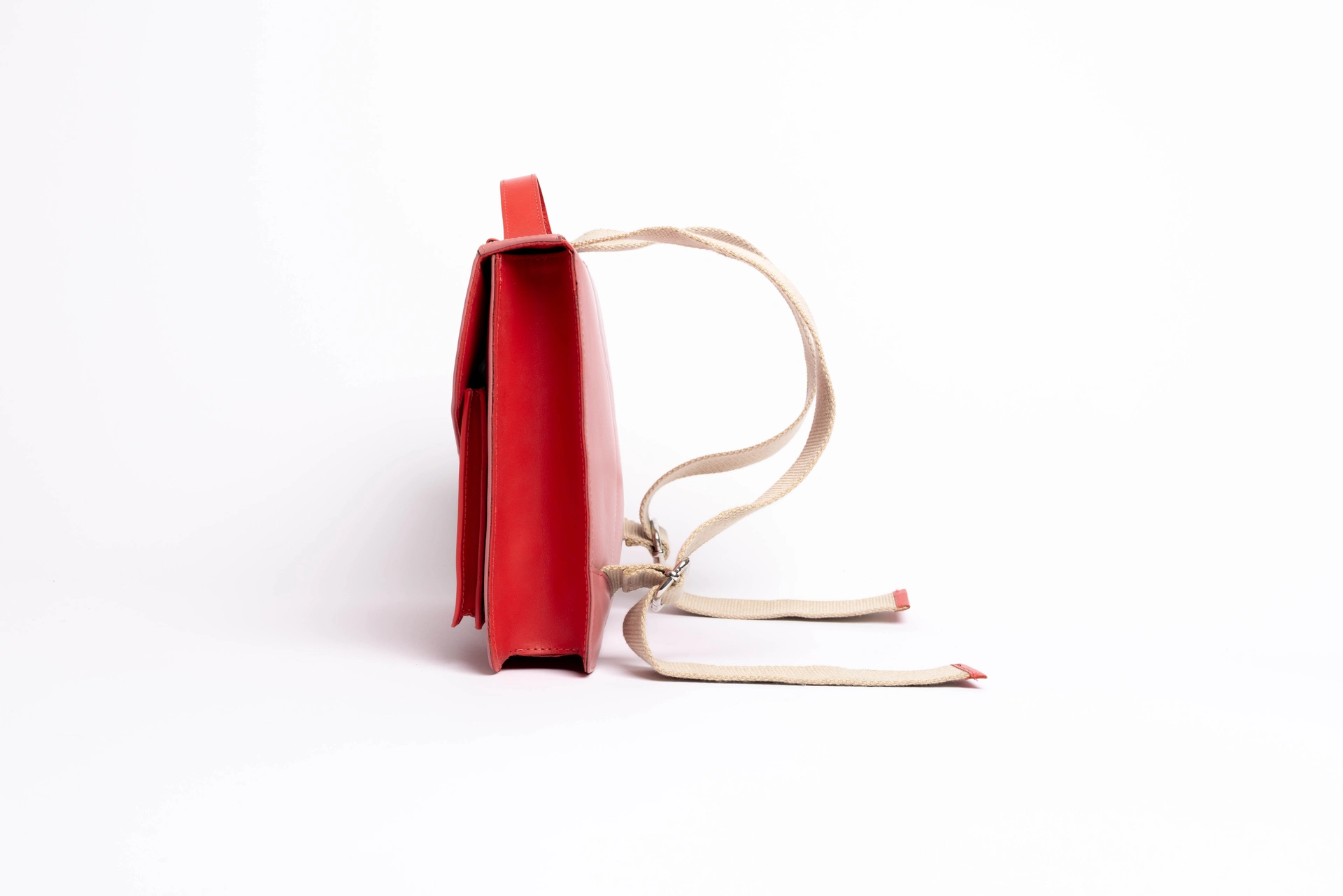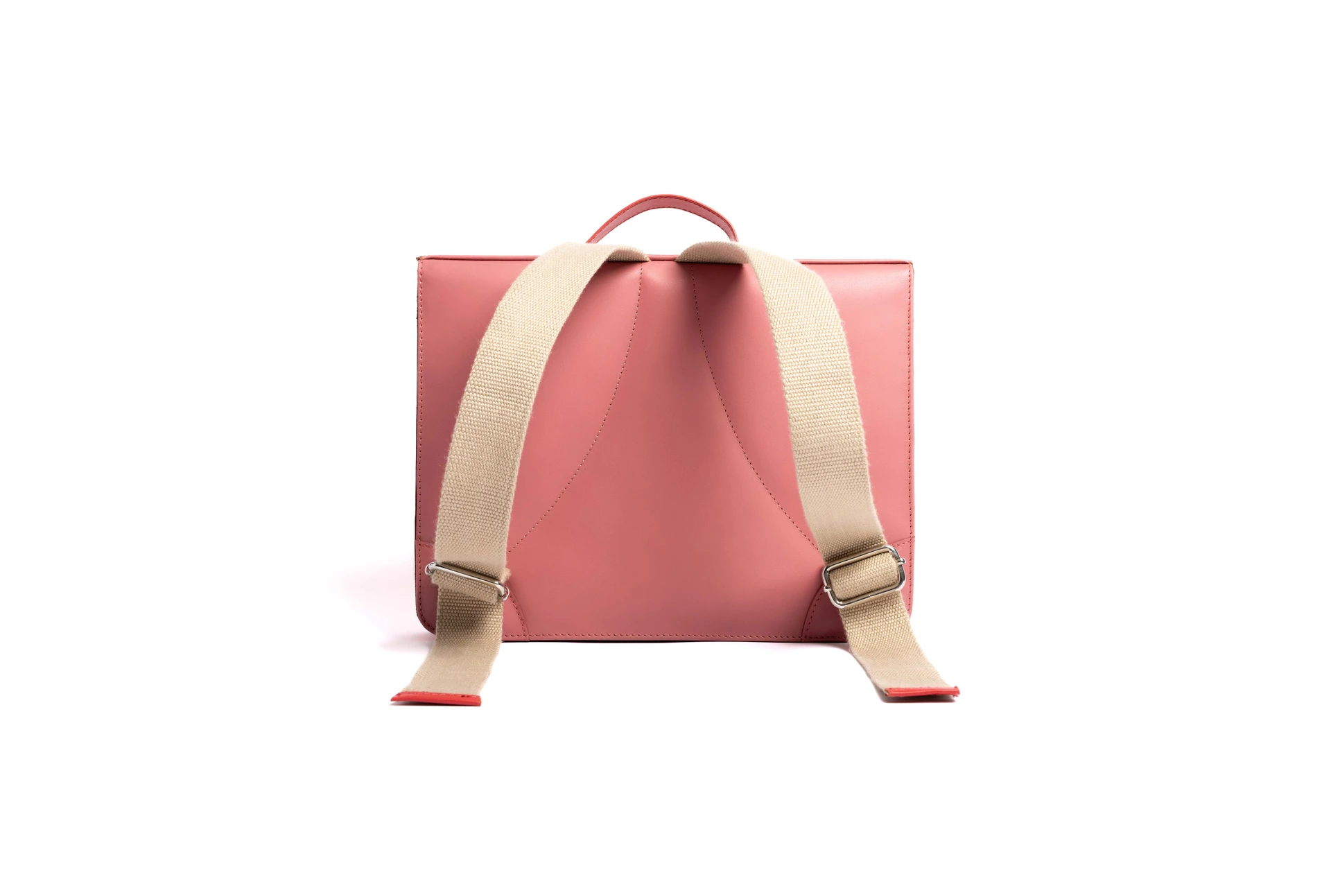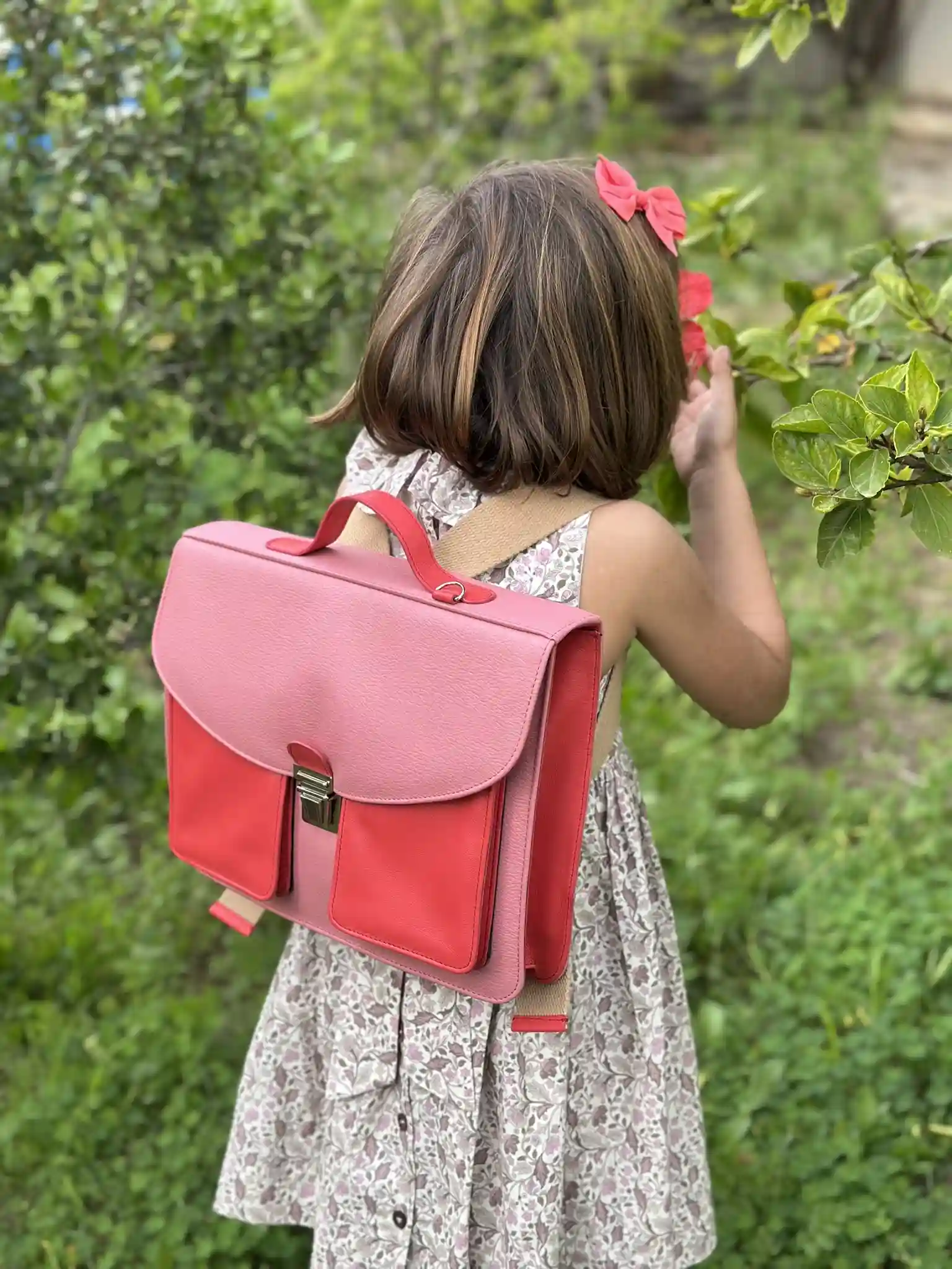 Petit cartable pour enfant de maternelle, bicolore, aux couleurs rose et rouge framboise. Avec son dos molletonné et ses sangles en coton ajustables. Il est parfaitement adapté aux enfants âgés de 2 à 6 ans. Les poches sont amovibles et maintenues par 4 boutons-pression