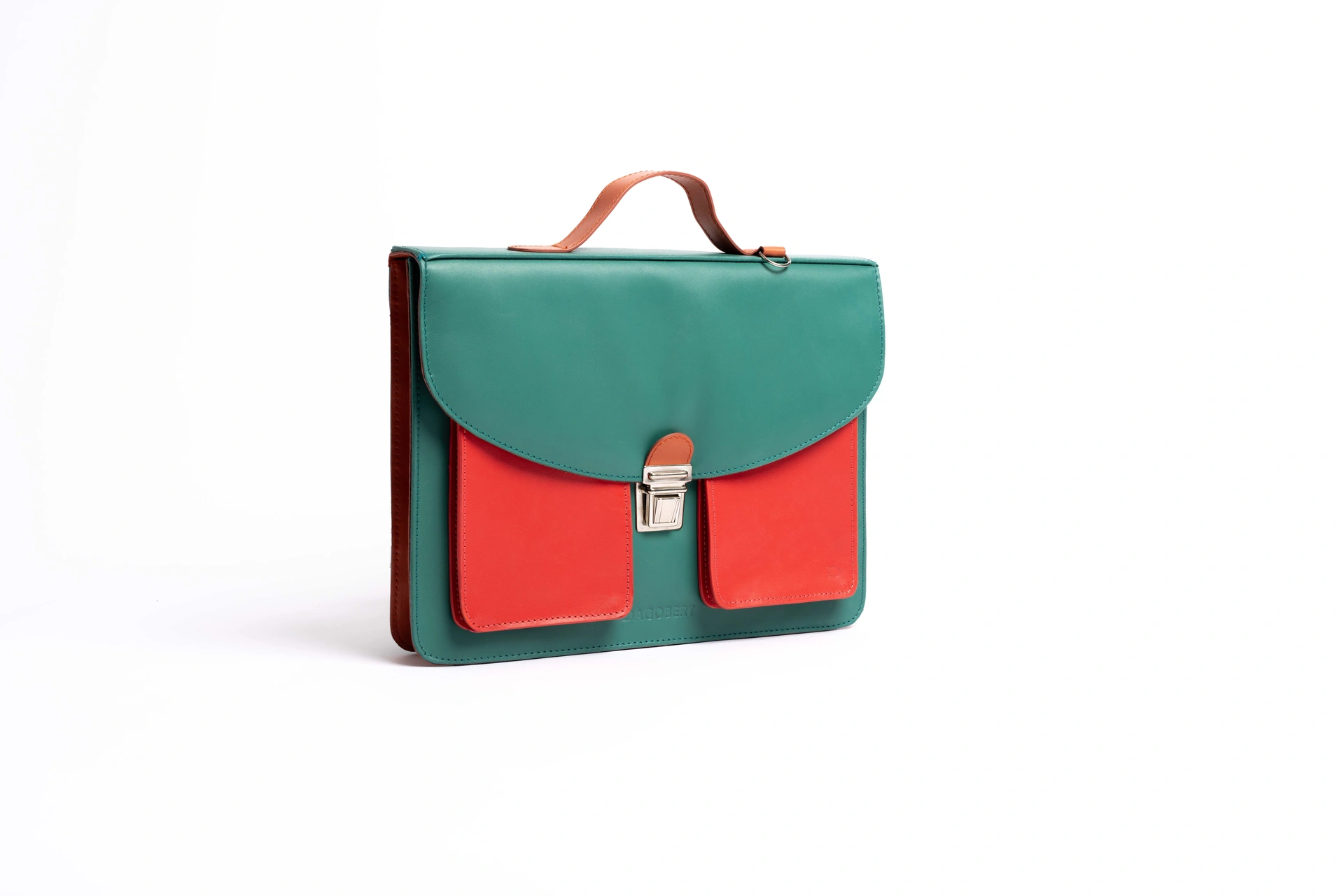 Accroche 4 boutons-pression 100% cuir de vachette pleine fleur Doublure intérieure textile bleu marine.